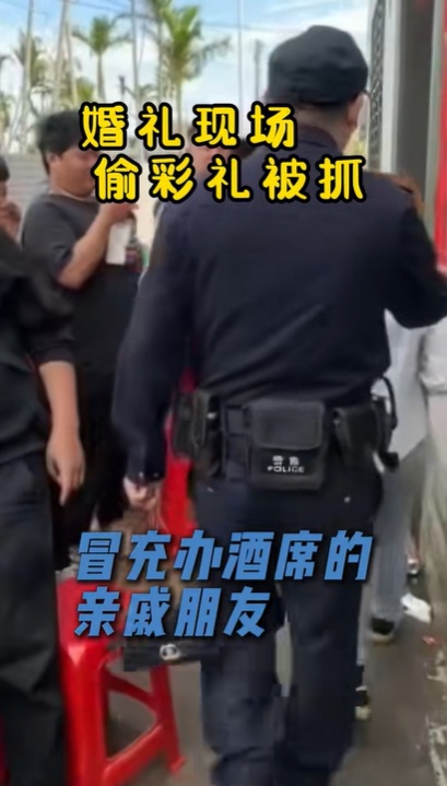 3月3日,海南海口,多位网友发视频称,琼山区红旗镇一女子伪装新人亲戚在婚礼上偷新娘红包引热议。据琼山警方发布的消息,嫌疑人已被刑拘。民警介绍,嫌疑人现场冒充亲戚朋友,到新娘的房间里面偷了钱,民警出警赶到现场,村民已经把嫌疑人抓获了。