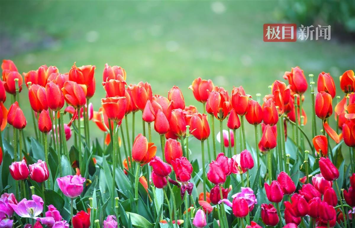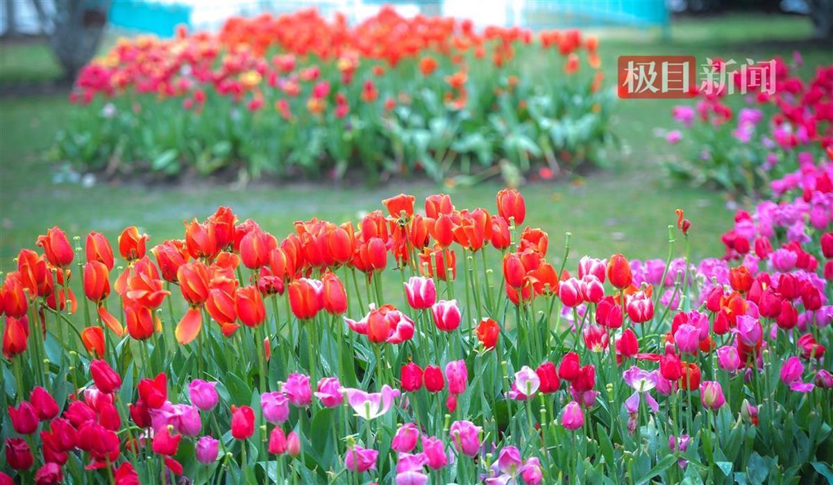 3月4日,武汉中山公园内,郁金香花海再次吸引了众多游客的目光。在这片色彩斑斓的花海中,无数朵郁金香竞相绽放,红、粉、紫、黄、白……五彩缤纷的色彩交织在一起,构成了一幅绚丽多彩的画卷,将整个花海装点得格外艳丽。