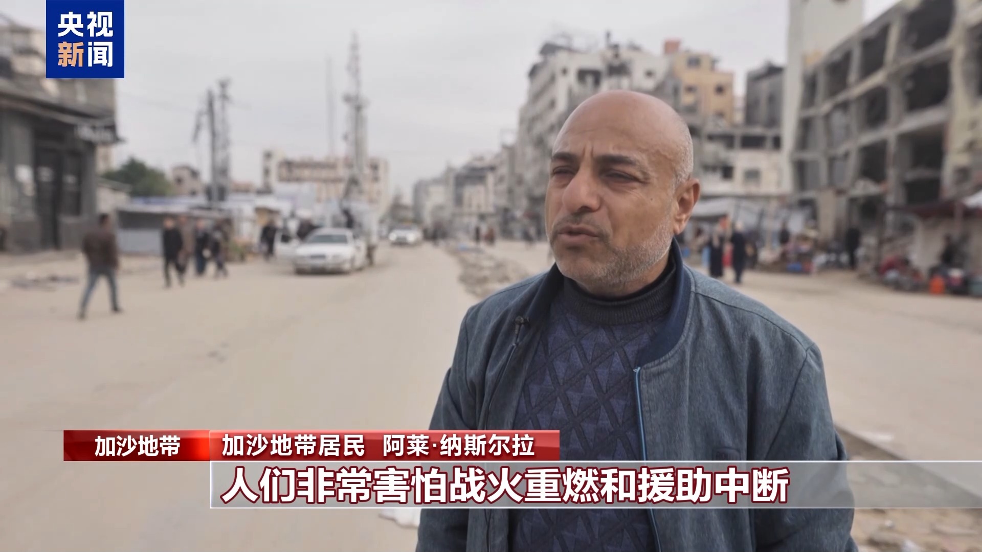 加沙地带居民 穆罕默德·伽马里:许多人对加沙地带可能再次爆发战争感到恐惧,因为我们无法忍受战争或其他任何类似事情的再次发生。我们呼吁国际社会、世界各国,特别是阿拉伯和伊斯兰国家对以色列方面继续施加压力,促使其完成停火协议(谈判),并按照已商定的内容进入(停火)第二阶段。