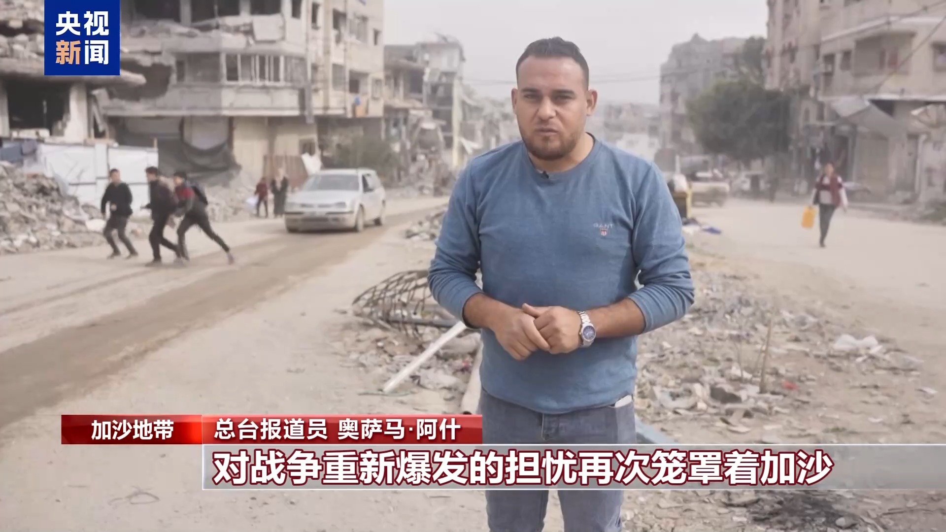 总台报道员 奥萨马·阿什:随着停火协议第一阶段到期,对战争重新爆发的担忧再次笼罩着加沙。加上援助物资无法进入,使得人道主义危机日益恶化。加沙民众呼吁国际社会紧急干预,防止在这片土地上发生新的灾难。