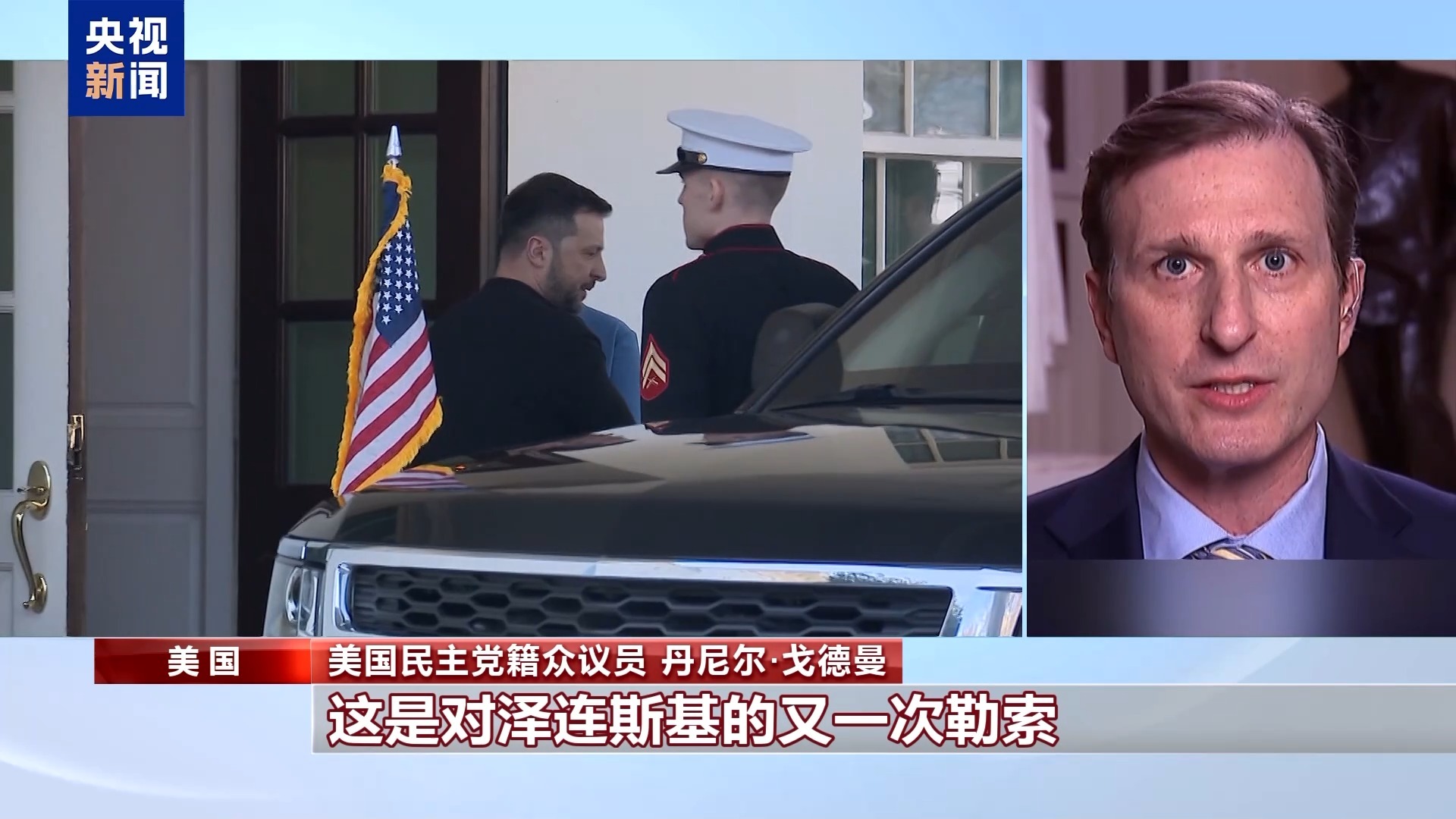 美国民主党籍众议员 丹尼尔·戈德曼:这是对泽连斯基的又一次勒索。(特朗普)非法暂停了援助,为了逼迫泽连斯基就范,签署矿产协议。而这份矿产协议是为了偿还前总统拜登为乌克兰提供的援助。这种做法太荒谬了,太可笑了,太幼稚,太丢人了。