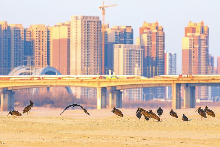 “江边生态环境的好转,是吸引黑鹳上洲的重要原因。”武汉市生态环境局相关负责人介绍。