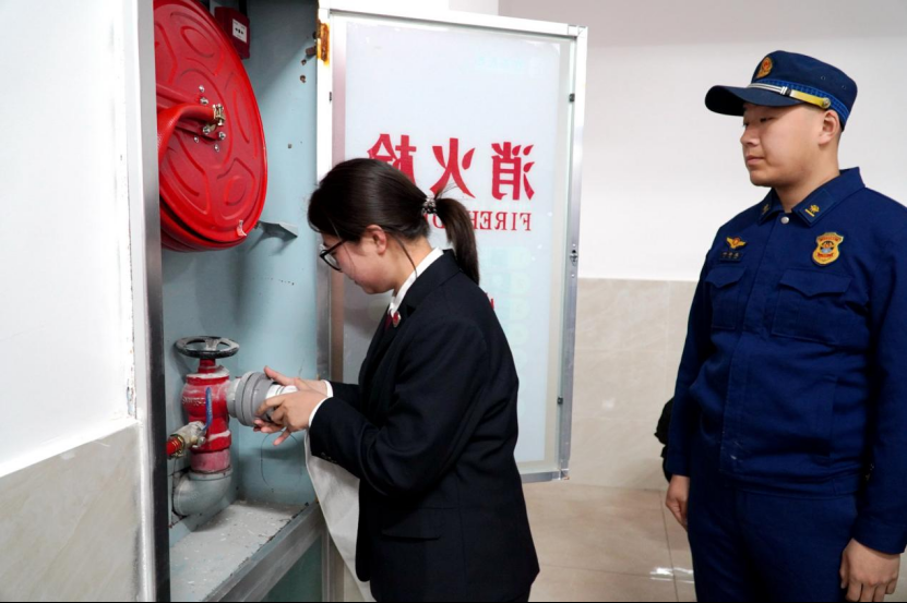 “水带水枪连接也有大学问!”蓝老师一边讲解一边示范,志愿者们跃跃欲试,两人一组进行水带水枪连接实操演练。“快、准、稳!”在蓝老师的指导下,志愿者们动作迅速,配合默契,成功完成了水带水枪连接任务,赢得了阵阵掌声。