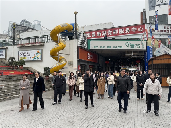 2月25日上午,来自湖北省商务厅、武汉市市商务局及江岸区、汉阳区、硚口区、武昌区等商务局、街道、社区的50余人齐聚南湖街道,共同聚焦“一刻钟便民生活圈”建设工作。
