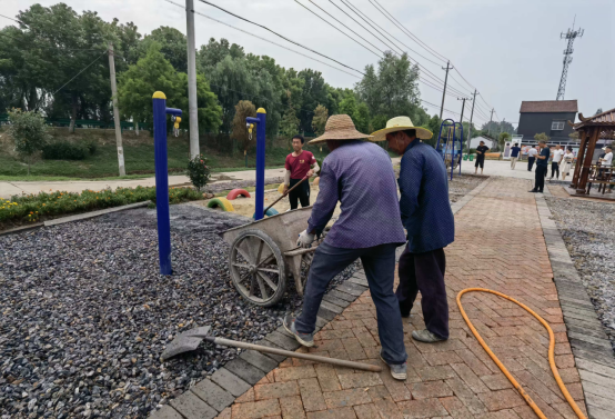 从白马寺镇进入六合垸,便是曹夹湖分场前进队, “和美村居共同前进” 八个红字映入眼帘。“这儿紧挨着主干道,以前是一处废弃的低洼地,杂草蚊虫不得了,现在建好了,有秋千、有沙坑,俺孙娃天天要来耍,俺们太高兴了。”退休多年的老支书李生产说道。一眼望去,前进队小公园设有步道、草坪、乒乓球桌、健身游乐设施。很难想象,这片占地400平方米的小公园,此前杂草丛生、垃圾堆积。