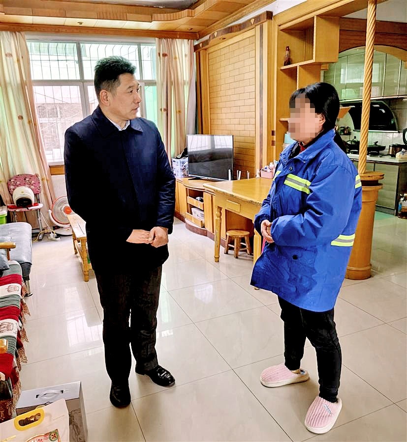 蔡甸区总工会主要领导上门看望慰问林凡。通讯员供图