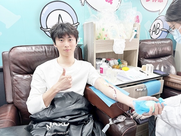 武汉科技大学的陈谭潇正在第三次献血。通讯员供图