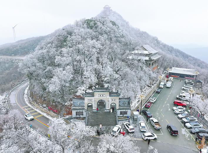 3月4日,荆门市东宝区圣境山风景区出现雾凇美景,形态各异的雾凇点缀在树枝、草木之上,宛如琼树银花、如梦如幻、分外妖娆,吸引了不少游客前来打卡、拍照。雾凇俗称树挂,是在严寒季节里,空气中过于饱和的水汽遇冷凝华而成。(视界网 朱俊波 余鹏泊 摄)