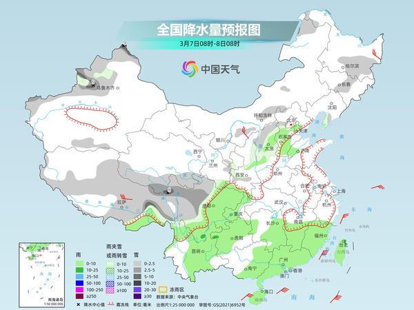 未来十天,由于南支槽活跃,南方地区将遭遇连阴雨天气。其中今明两天(3月6日至7日),暖湿气流不强,南方普遍以小到中雨为主,局地或现大雨,并伴有强对流天气。连续阴雨寡照也使得南方大部回温乏力,而北方地区在阳光的加持下则会迅速升温,预计本周末至下周初,多地暖意将达到近期鼎盛。