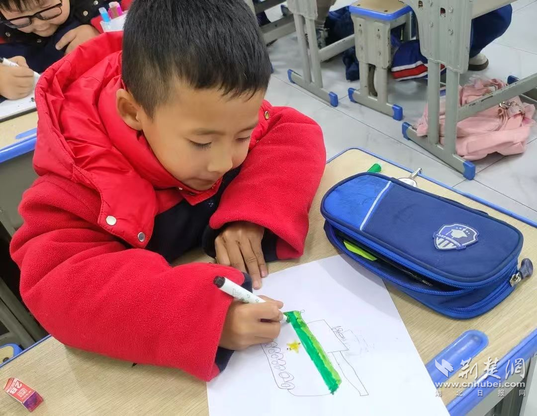 除了理论讲解,现场还组织了实践活动,带领学生学习和认识军事装备,并画出自己最喜欢的武器装备。