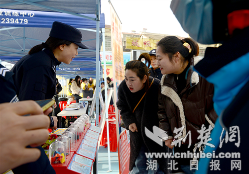 京山公安青年志愿者服务队在“学雷锋、做志愿”服务活动为群众讲解新型毒品知识。通讯员 供图
