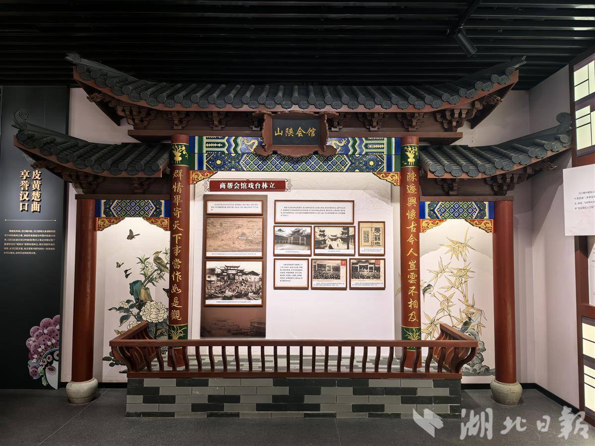 馆内,清代汉口山陕会馆戏台复原实物同样引人注目。戏台的复原,从建筑风格到装饰细节,都力求还原历史原貌,精美的木雕、彩绘,不仅展现了当时高超的建筑技艺,更反映出汉剧在当时社会文化生活中的重要地位。欧阳亮介绍,明清之际,汉口凭借九省通衢的地利之便,成为商业重镇,也是演出活跃的“戏码头”。山陕会馆戏台见证了清代汉口“戏码头”的繁荣,众多汉调戏班曾在此登台献艺。