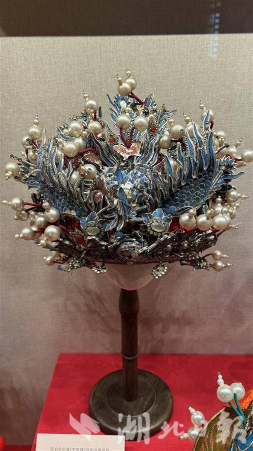 陈伯华出演《宇宙锋》时所戴的“点翠凤冠”,堪称镇馆之宝。这顶凤冠制作精美,翠羽鲜艳夺目,每一颗宝石、每一片翠羽都经过精心镶嵌。武汉汉剧院研究部主任张志文介绍,在《宇宙锋》中,这顶凤冠与陈伯华的精湛表演相得益彰,成为经典。它不仅是一件华美的服饰,更是汉剧舞台艺术的象征,代表了当时汉剧服饰制作的高超水平。