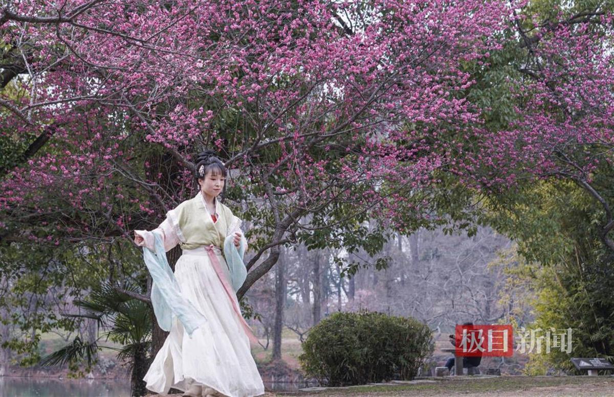 来东湖赏梅,游客们游赏方式花样迭出:邀三五好友,在梅林里吹拉弹唱,淡淡梅香合着琴韵流淌,别有一番韵味;有的女孩一身汉服装扮,拍下古风古韵之美,四时之美,尽在此间。