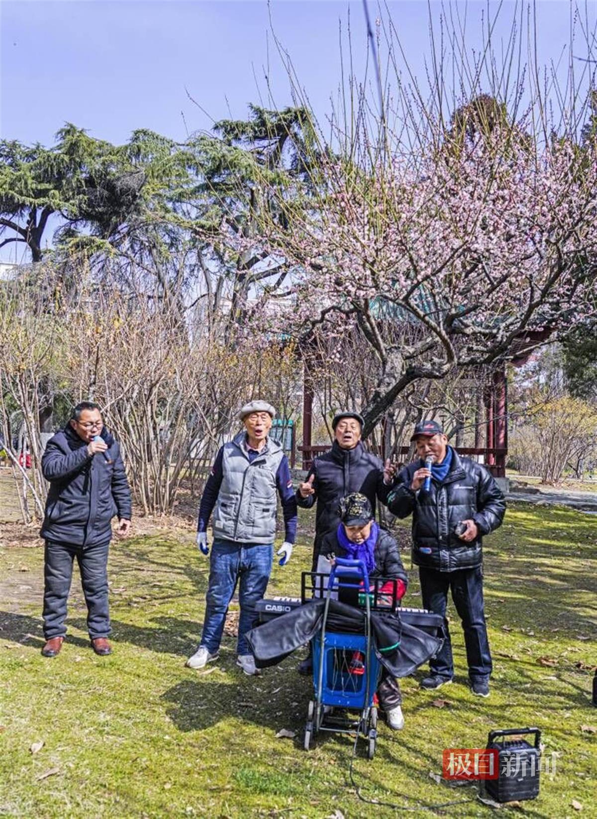市民万先生行至秦园中路,路边一片红梅闯入他的眼帘,他情不自禁地哼唱《汉阳门花园》中的一句唱词:“冬天腊梅花,夏天石榴花,过路的看风景……”
