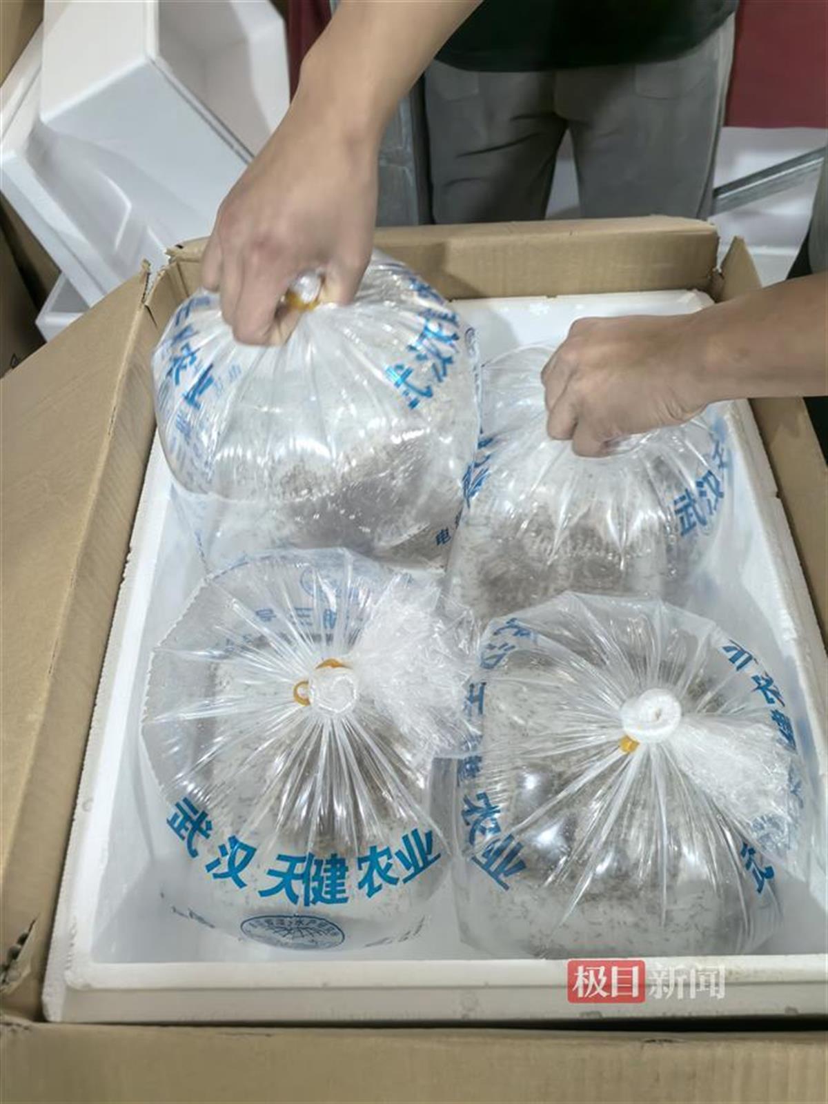 随后,在公司工作人员的带领下,极目新闻记者走进装运车间,里面的10多位工作人员正在流水线式作业,从起苗到点数装袋再到充氧捆扎和封箱装车,全过程行云流水一气呵成。