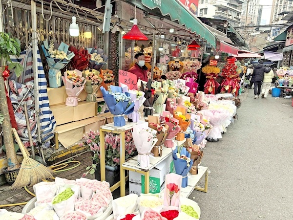 鲜花市场上,摆满了各种礼品花束 摄影:楚天都市报极目新闻记者石倩