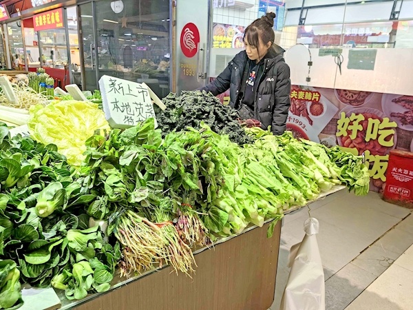 3月4日上午,在汉口后湖南路的生鲜市场里,一位市民在看到红苋菜后,没有问价钱就挑了一大把,称重付钱,满意地离开。