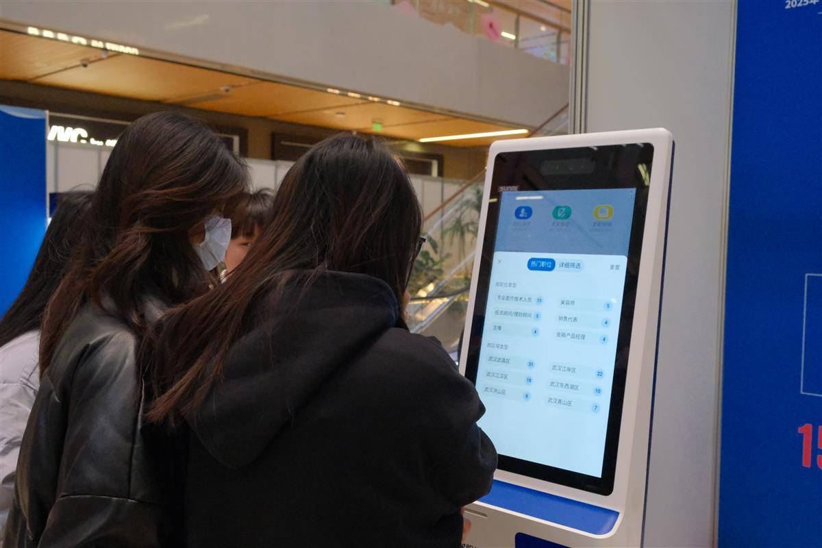 现场还展示了“AI+就业”智能求职机,为求职者带来“扫脸即投递”“一键查匹配”等科技体验。直播带岗区则邀请知名企业现场直播进行岗位推介。