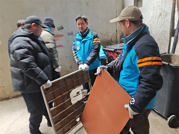 “蓝骑士”们搬运废弃垃圾。 通讯员供图