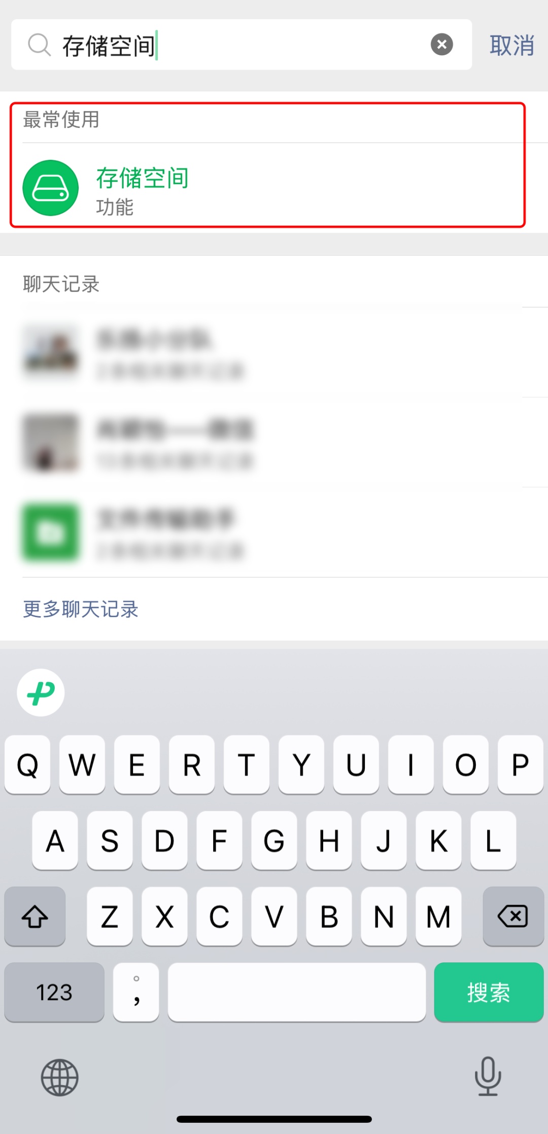在微信搜索框输入“存储空间”,可一键直达存储空间管理页面。