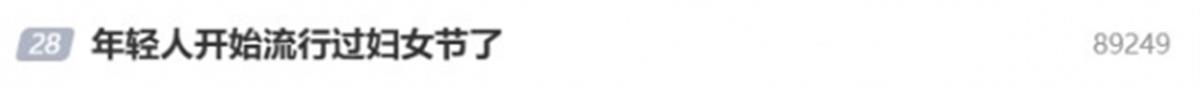 年轻人开始流行过妇女节了——3月5日,在“三八妇女节”来临之际,这个话题冲上新浪热搜榜。