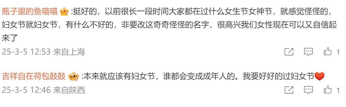 年轻女性网友:“不需要任何平替,我们过的就是妇女节!”