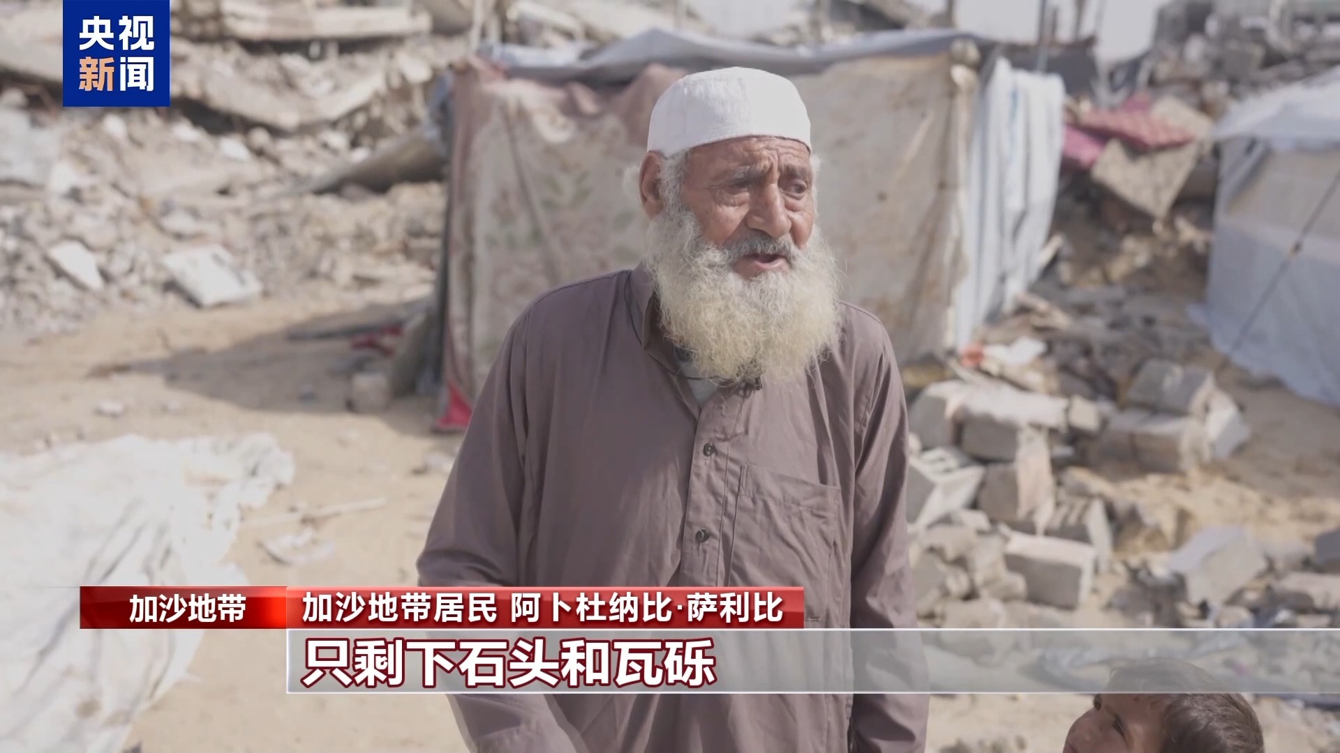 加沙地带居民 阿卜杜纳比·萨利比:我们生活的地方已被完全摧毁,只剩下石头和瓦砾。现在我们迫切需要食物和水。以色列关闭了过境点,严重影响了我们的生活,儿童、妇女和老人都没有吃的、没有喝的,这是我们每天活下去的必需品。但现在我们要从哪里才能得到这些?
