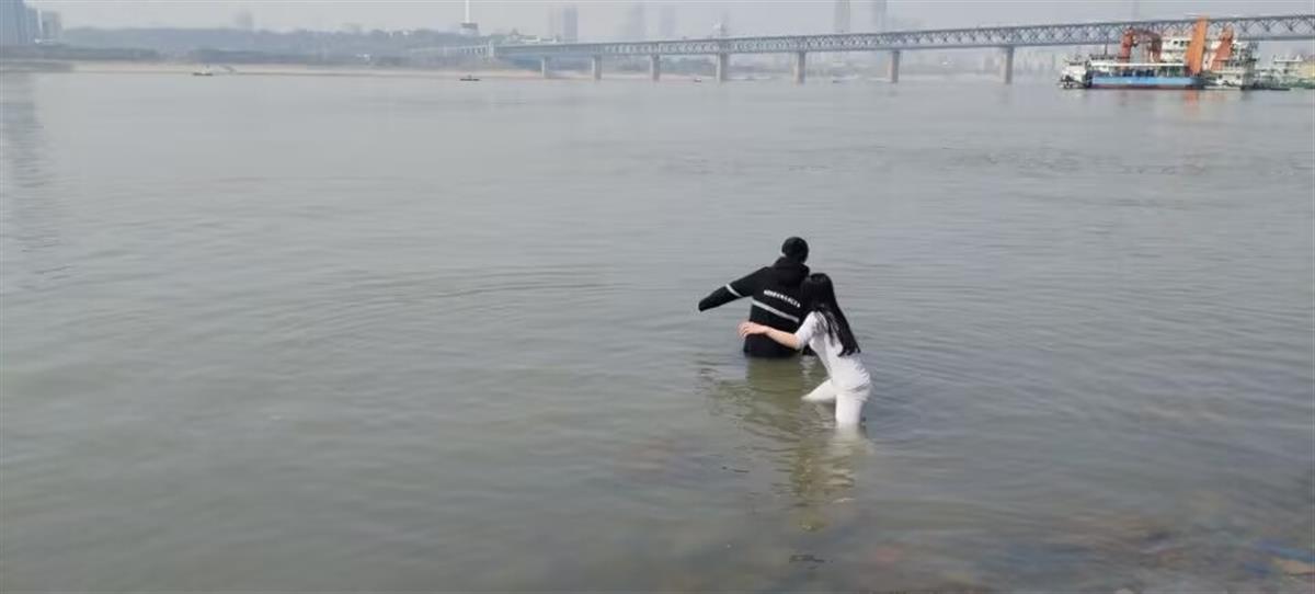3月8日,下水救人的邓智慧老师告诉极目新闻记者,她是通山县新时代高级中学的一名音乐和心理教师,今年27岁,来自湖南邵阳。3月7日上午,她和同事谭品腾老师受学校委派,前往湖北第二师范学院参加校园招聘会,为2025年秋季学期招聘新教师。当日14时许,两人午餐后在武昌黄花矶江滩散步,准备前往附近的武汉音乐学院继续招聘工作。散步过程中,他们发现一名年轻男子站在江边的浅水中。起初,她以为该男子在玩水,但继续观察时发现男子精神状态不好,脚步一步一停留地走向深水区。