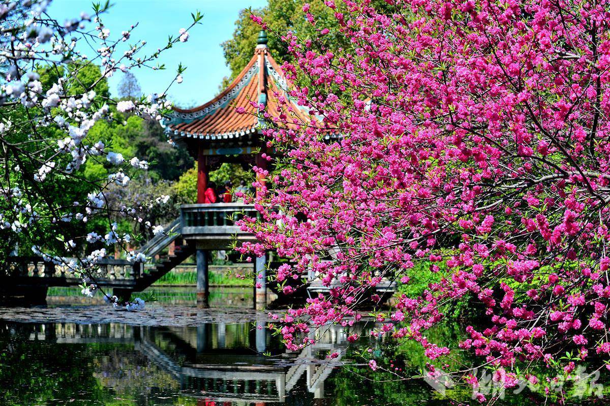 武汉植物园以桃花园—野果园-蔷薇园为中心,打造了含桃花、梨花、李花、海棠、樱花、郁李、棣棠、李叶绣线菊等20多种蔷薇科花卉的综合展示区,花卉数量达上万株。