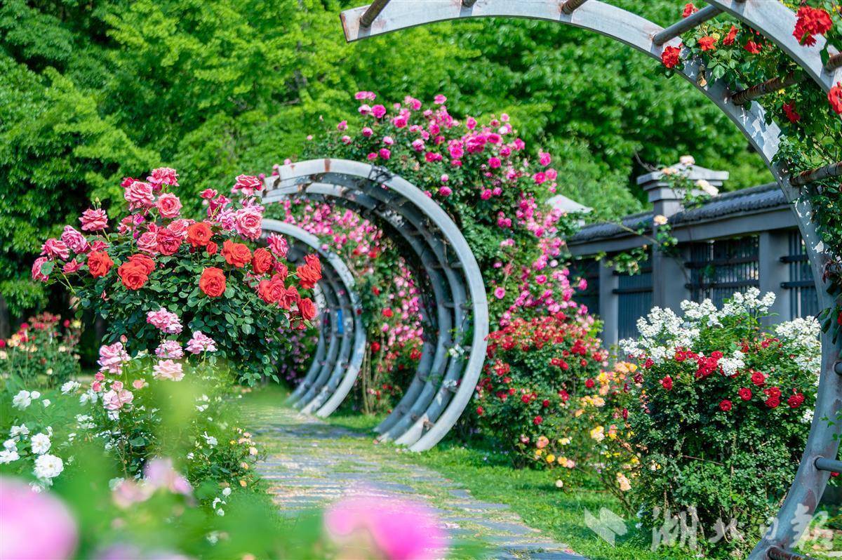 七千株月季在春日尾声掀起最炽热的乐章。“粉扇”的绯红、“黑珍珠”的神秘、“绿星”的清新,两百个品种的月季以九重色谱编织视觉交响。