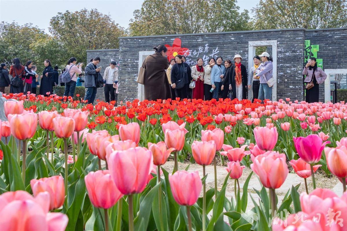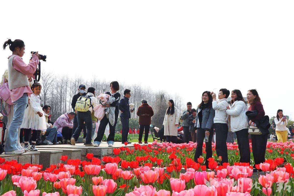 2025年3月8日“三八”国际妇女节,在武汉市东西湖区郁金香主题公园,不少女士在此赏花感受春光。当日,以“赴花海盛宴,品东方美学”为主题的第十三届郁金香主题花展开幕,各色郁金香汇聚成“她”的海洋。(湖北日报全媒体记者 倪娜 通讯员 但峰 摄)