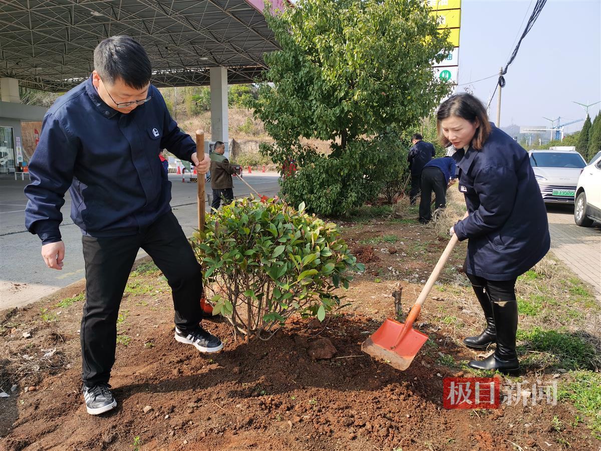 “让加油站更多一点绿色,让我们的加油站更加环保。”此次带队的党员赵建华不断向大家宣传鼓劲。打造无废加油站,打造绿色加油站,中石化黄石公司一直在努力前行,持续秉持绿色发展理念,他们将以此次植树活动为契机,持续开展环保宣传,为打造绿色企业促进黄石碧水蓝天、生态宜居作出央企的贡献。