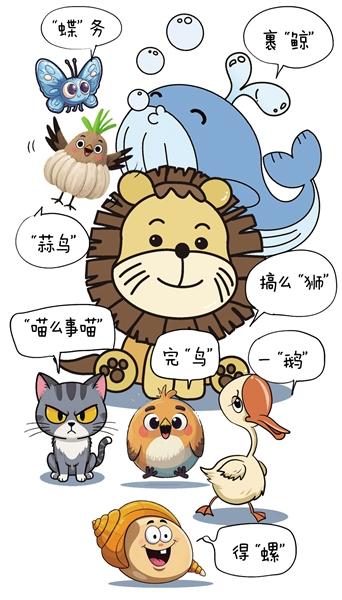 咵爹爹:对头!你只要往动物那个方向上想一想,武汉话就有蛮多的内容阔以连上克,比如,“蝶”务,一“鹅”,搞么“狮”,裹“鲸”……