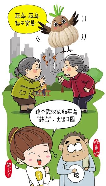 欢喜坨:网友讲了唦,因为这个“蒜鸟”是武汉的和平鸟。只要遇到有人吵架,劝架的人就上克讲“蒜鸟,蒜鸟”,吵架的人就吵不下克了,干脆“就梯子下台”,自各该搞么事搞么事去。