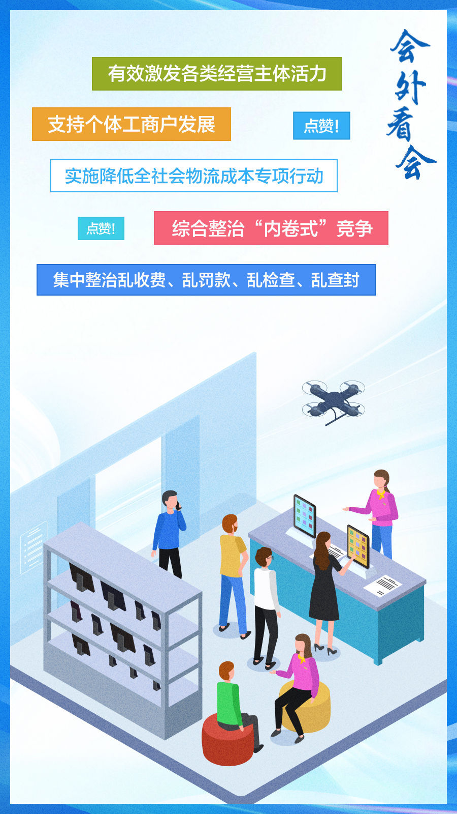 新华社北京3月9日电 综合整治“内卷式”竞争,集中整治乱收费、乱罚款、乱检查、乱查封,实施降低全社会物流成本专项行动……今年的政府工作报告,有力回应了各类经营主体面临的烦恼,大家直呼信心更足、干劲更强,要保持爱拼会赢的精气神!