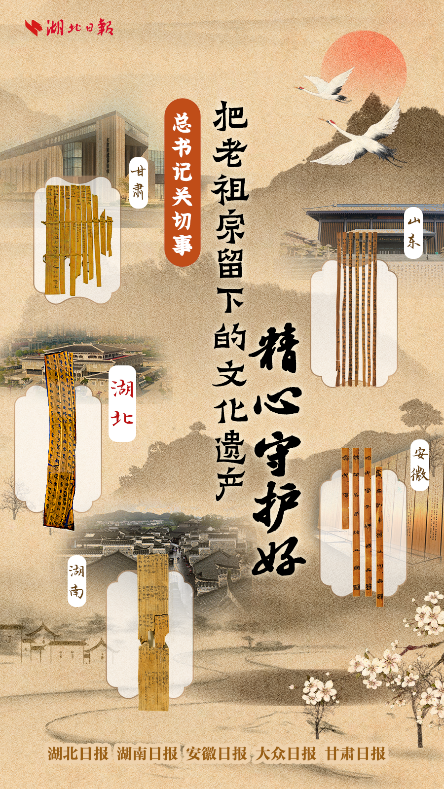 3月8日,湖北日报联动湘皖鲁甘四省党报,共同聚焦简牍文化保护与传承。来自鄂湘皖鲁甘五省的小“简牍迷”小宇、小萌、小乐、小阳、小果组团探访五省简牍保护场所,品“牍”传统文化保护与传承,一起来看他们穿越千年的研学之旅。