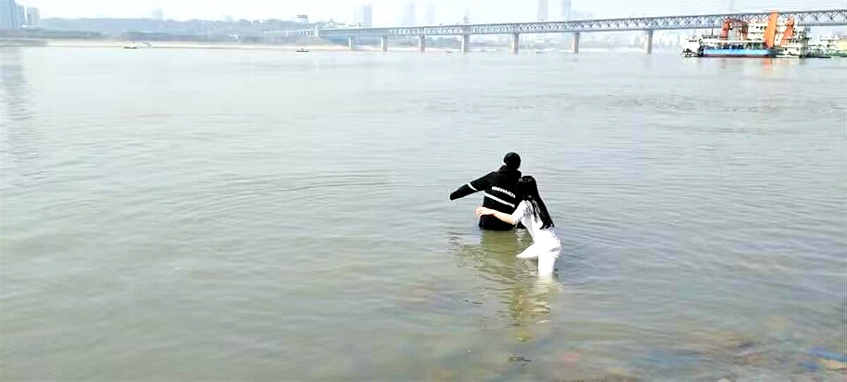 “要不是你,这个伢就完了!”3月7日下午,武汉市武昌区黄花矶江滩边,一名年轻男子往江中走去。在武汉出差的通山县女教师邓智慧和同事目睹后,不会游泳的她不顾寒冷和危险,冲入江水中,将男子救上岸来。