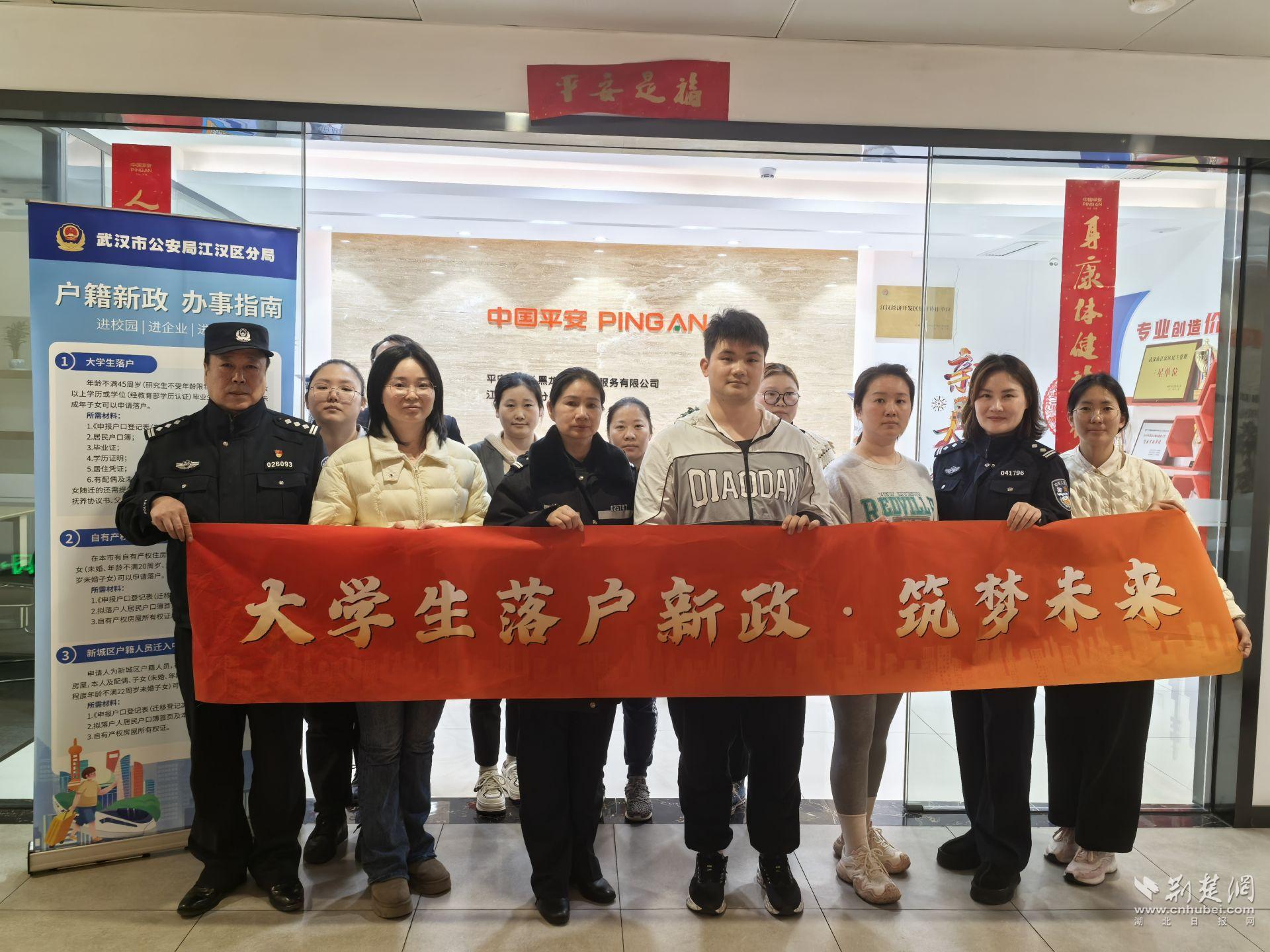 荆楚网(湖北日报网)讯(记者 白云 通讯员 丁美薇、孟佳霓)“毕业证、学历证明都带齐了吗?”3月6日下午,在江汉开发区圈外数字创意产业园内,2000年出生的应届毕业生小李将材料递给江汉公安民警。短短三分钟后,他拿着《落户申请受理回执》感叹:“原以为要跑好几趟政务大厅,没想到在办公室就把手续办妥了!”当天,武汉市公安局江汉区分局人口大队“江汉有礼”服务团队走进该园区,现场为36名大学生上门办理落户手续,同步开展反诈宣传活动,赢得企业员工点赞。