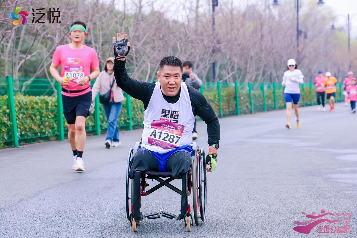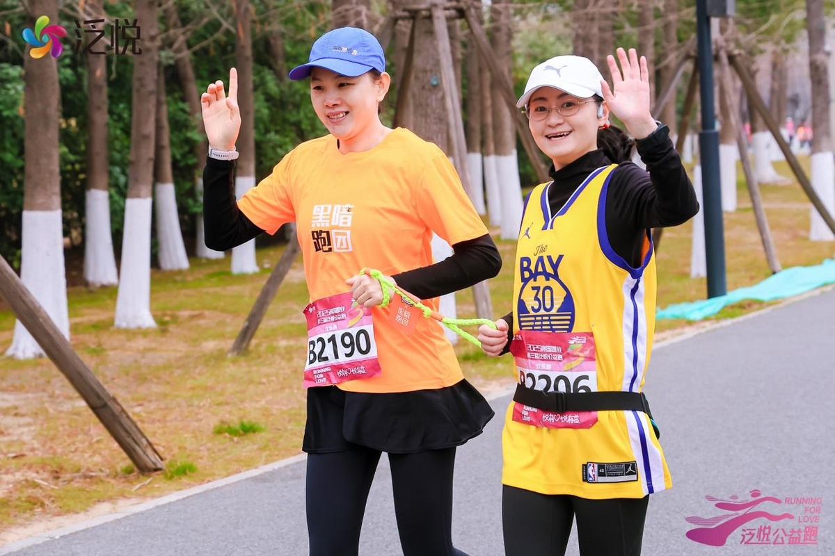本次活动还有一支特别的队伍,来自武汉的“黑暗跑团”。负责人王洁女士介绍道“今天很荣幸受主办方邀请,来参加泛悦公益跑。黑暗跑团是一个全国性的助残公益组织,旨在通过视障跑者与志愿者(陪跑员)通过牵引绳共同完成跑步、徒步等活动,强调平等参与,提倡残健共融。未来也希望更多的企业能组织这种类似的活动我们能参与进来。”