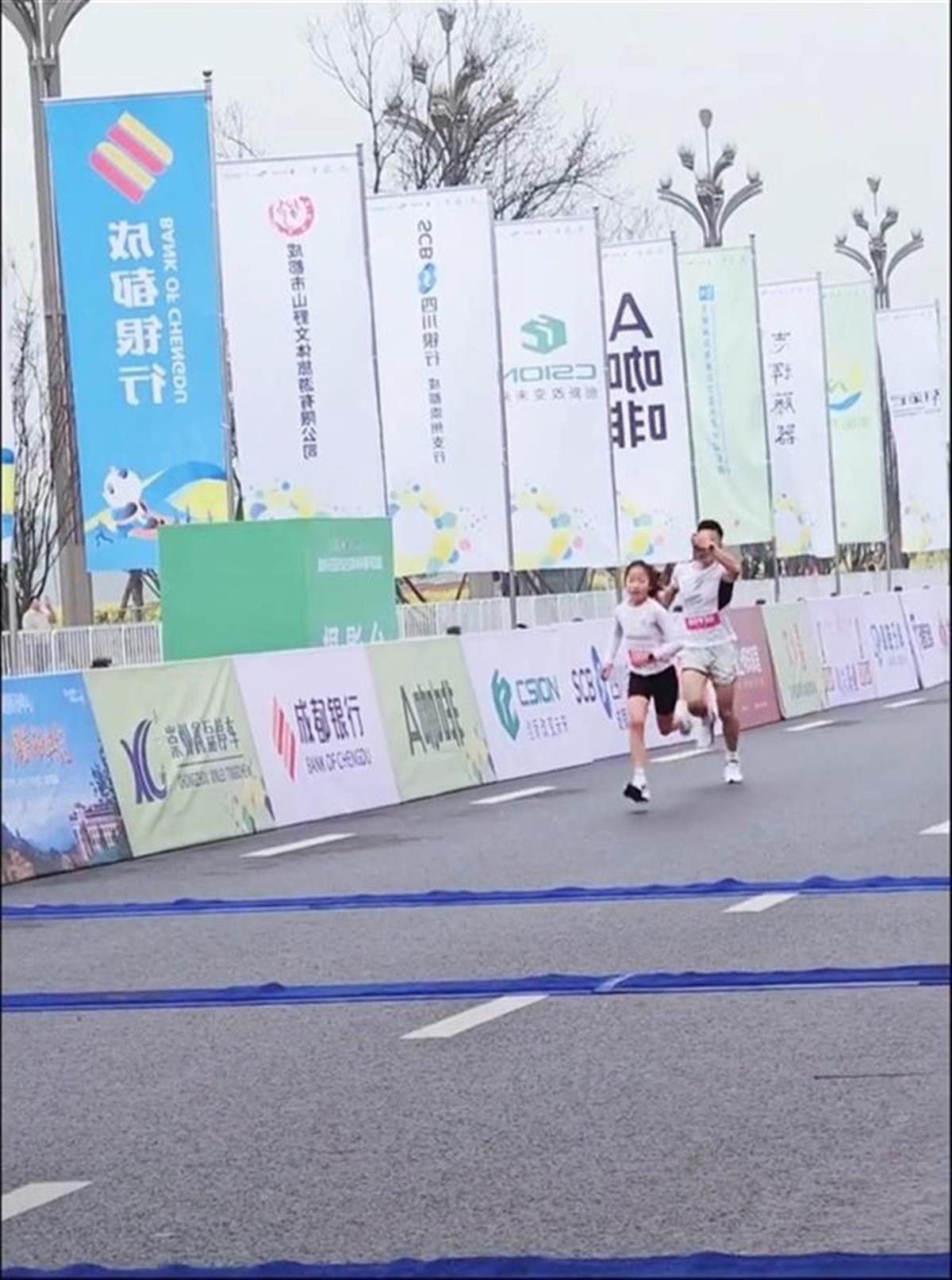多段视频显示,临近终点的位置,女孩健步如飞稳稳过线,现场观众为她喝彩。赛后,女孩表示:“跑得很开心,感觉自己跑得很快很棒。”父亲接受媒体采访时说,孩子从小就开始锻炼。