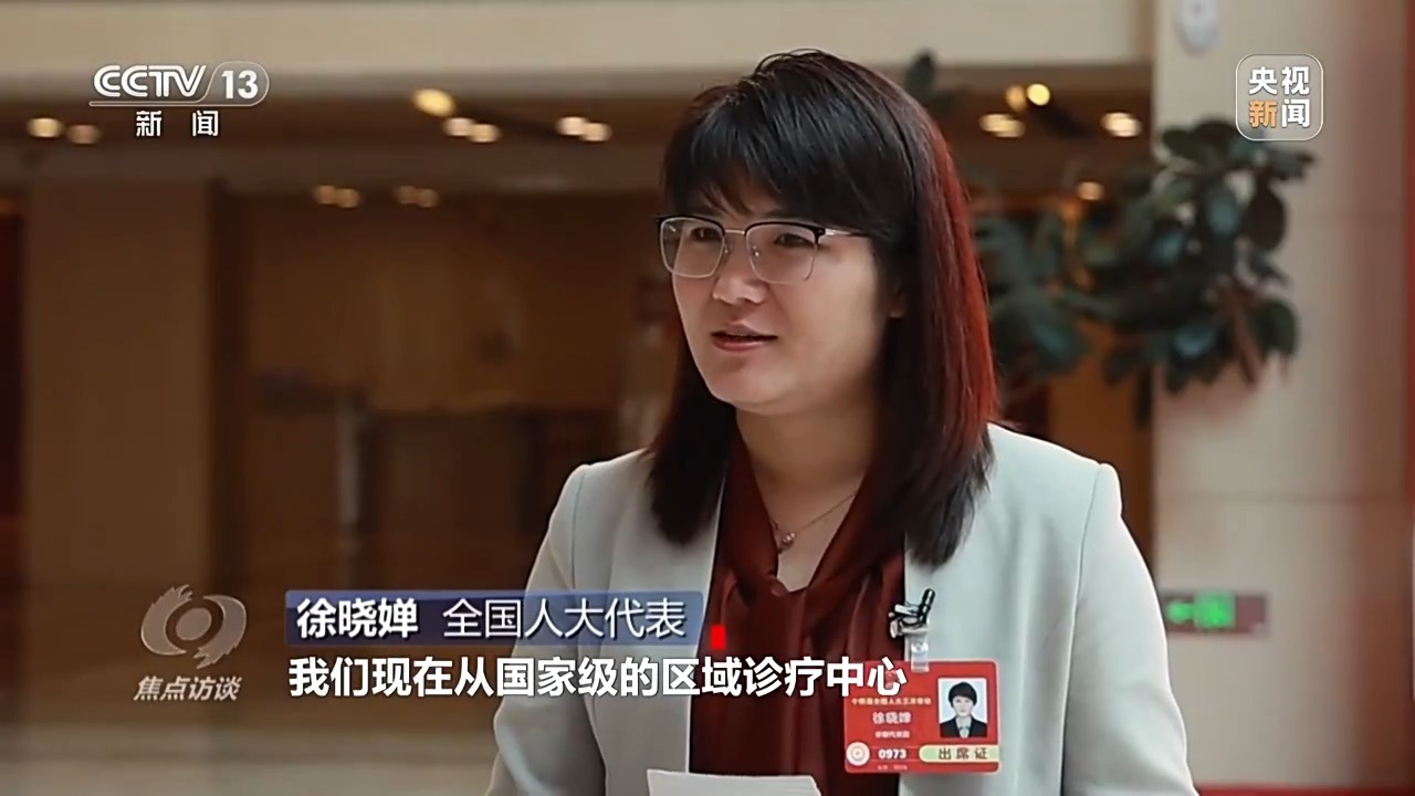 全国人大代表 徐晓婵:我们现在从国家级的区域诊疗中心到乡村一级的医疗机构都越来越完善了。今年,我的建议主要是针对基层的首诊和转诊服务,一定要有一个有效的转诊通道,有专门负责转诊的责任人,这个是目前摆在基层医疗面前的问题,也是老百姓最急难愁盼的问题。