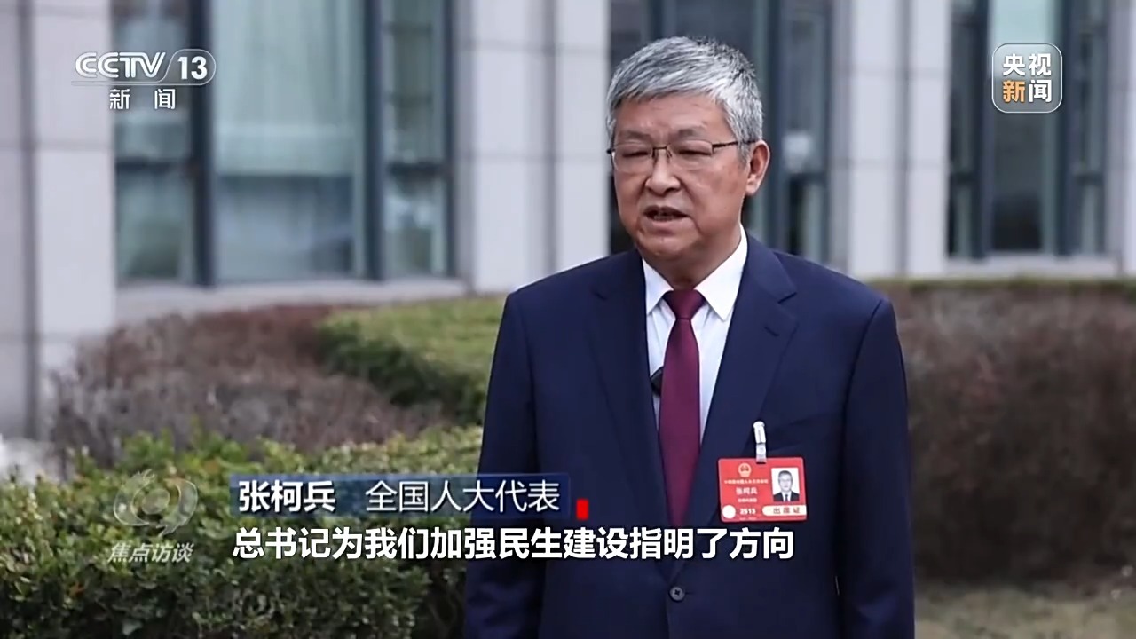 全国人大代表 张柯兵:这次两会期间,总书记为我们加强民生建设指明了方向。我们将认真贯彻落实,进一步把老百姓的事办实、办好。提出了“三个家门口”的目标,也就是努力让孩子在家门口能够上好学,让群众在家门口能够看好病,在家门口能够就好业,让每一位老年人幸福地安度晚年。