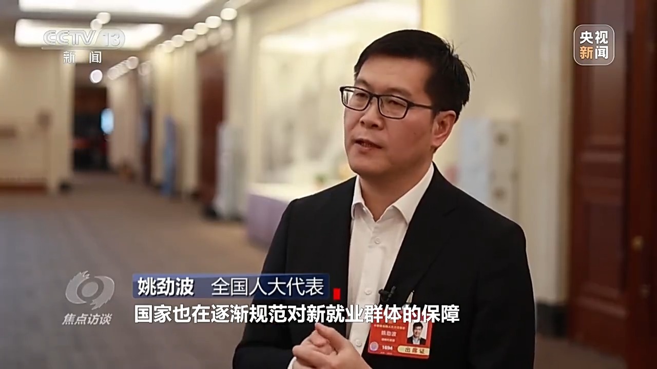 全国人大代表 姚劲波:国家也在逐渐规范对新就业群体的保障,让劳动者选择灵活就业,还是需要一些规范,得到更多的保护,就业会更充分。