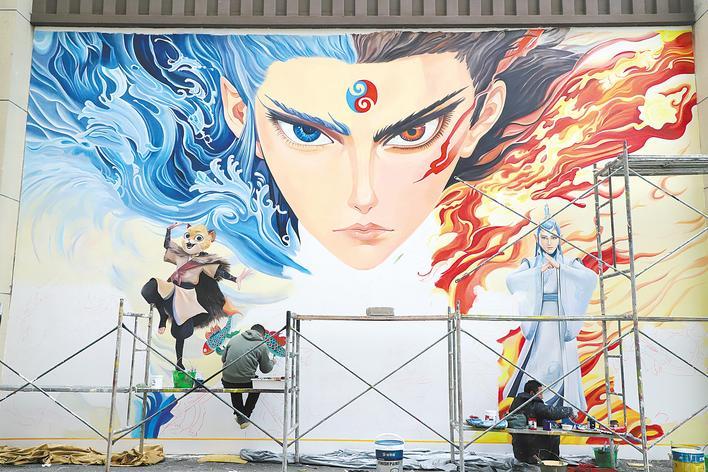 龚庭杰已在墙绘行业摸爬滚打9年。“我们这一代是看迪士尼动画长大的,对唐老鸭、米老鼠、狮子王等都耳熟能详。”提到他火遍全城的哪吒墙绘,龚庭杰的热血一下“燃”了起来:“哪吒、悟空等国漫的崛起,让中国文化和中国IP掀起前所未有的全球旋风,这是一种无法描述的自豪感!”