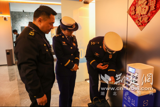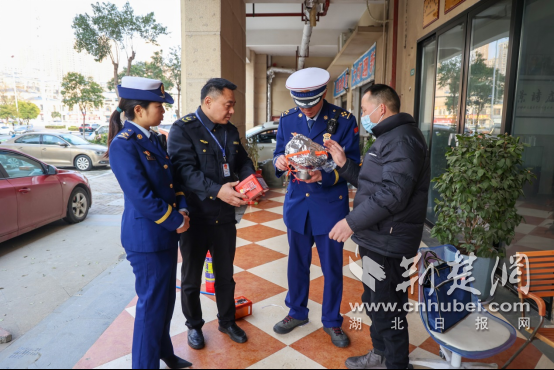 荆门消防联合市场监督管理部门对消防产品使用单位进行抽检。魏欢欢 摄