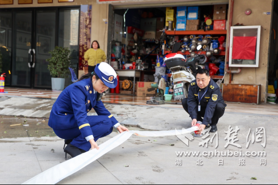 荆门消防联合市场监督管理部门对消防器材售卖处进行抽检。魏欢欢 摄