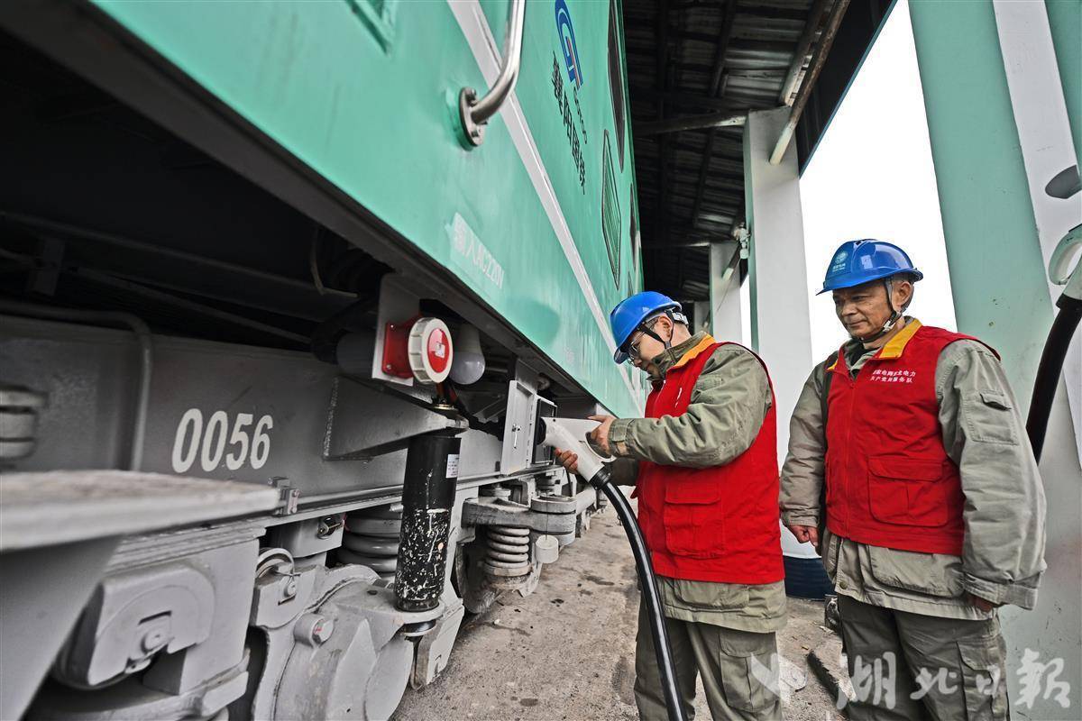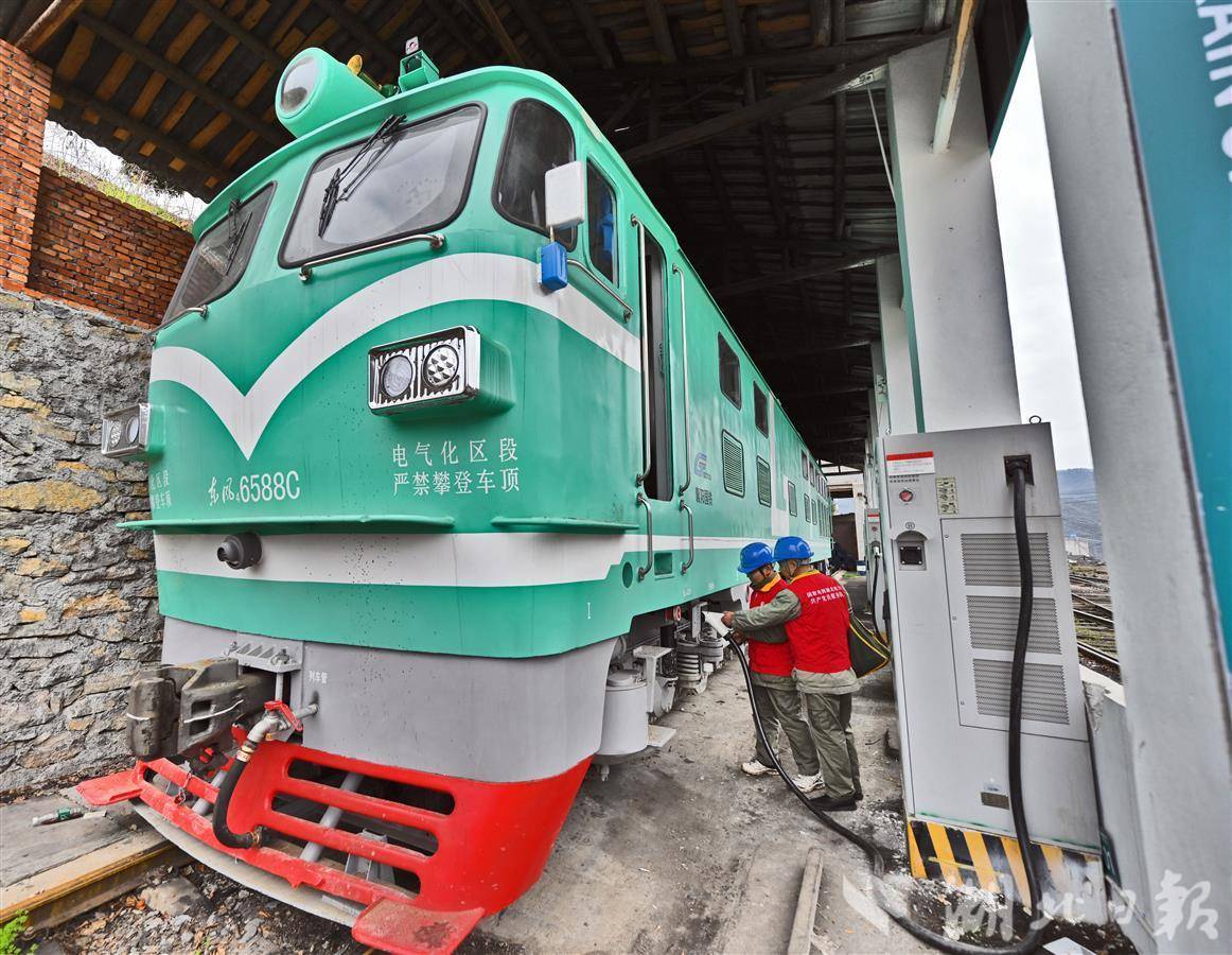 3月10日,宜都市松木坪镇,全省首台完成“油改电”重大升级的2160千瓦新能源动力火车头正紧锣密鼓地进行各项调试,预计本月中旬正式投入运营。(湖北日报全媒记者 刘曙松 通讯员 黎文来、向沁雪 摄)