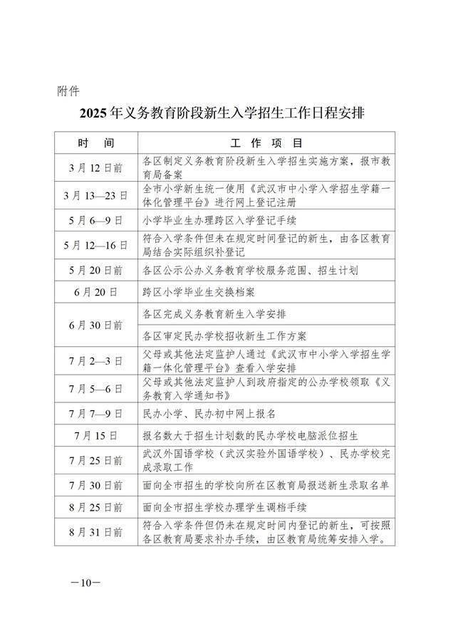 附件:2025年义务教育阶段新生入学招生工作日程安排
