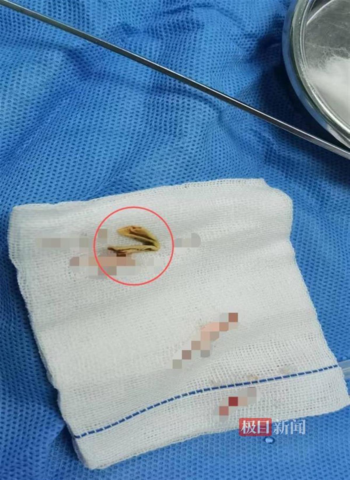 入院4天后,浩浩如期接受纤维支气管镜异物取出术。术中,心胸外科团队严阵以待,麻醉科团队全程精准把控麻醉深度,耳鼻喉科医生经过多次尝试,终于从右侧支气管成功取出异物——一个折叠成“V”型的糖果包装纸。